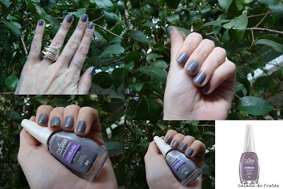 Bom, vamos ao que interessa, né?! A cor é linda, é um cinza, com um fundo de lilás… Apenas 2 camadas são suficientes para cobrir e chegar nessa cor marah! O esmalte é super fácil de passar! Adorei! Ja repeti e repetiria outras vezes -se não fosse todos esses lançamentos que eu to louca para experimentar… hahahaha-.
