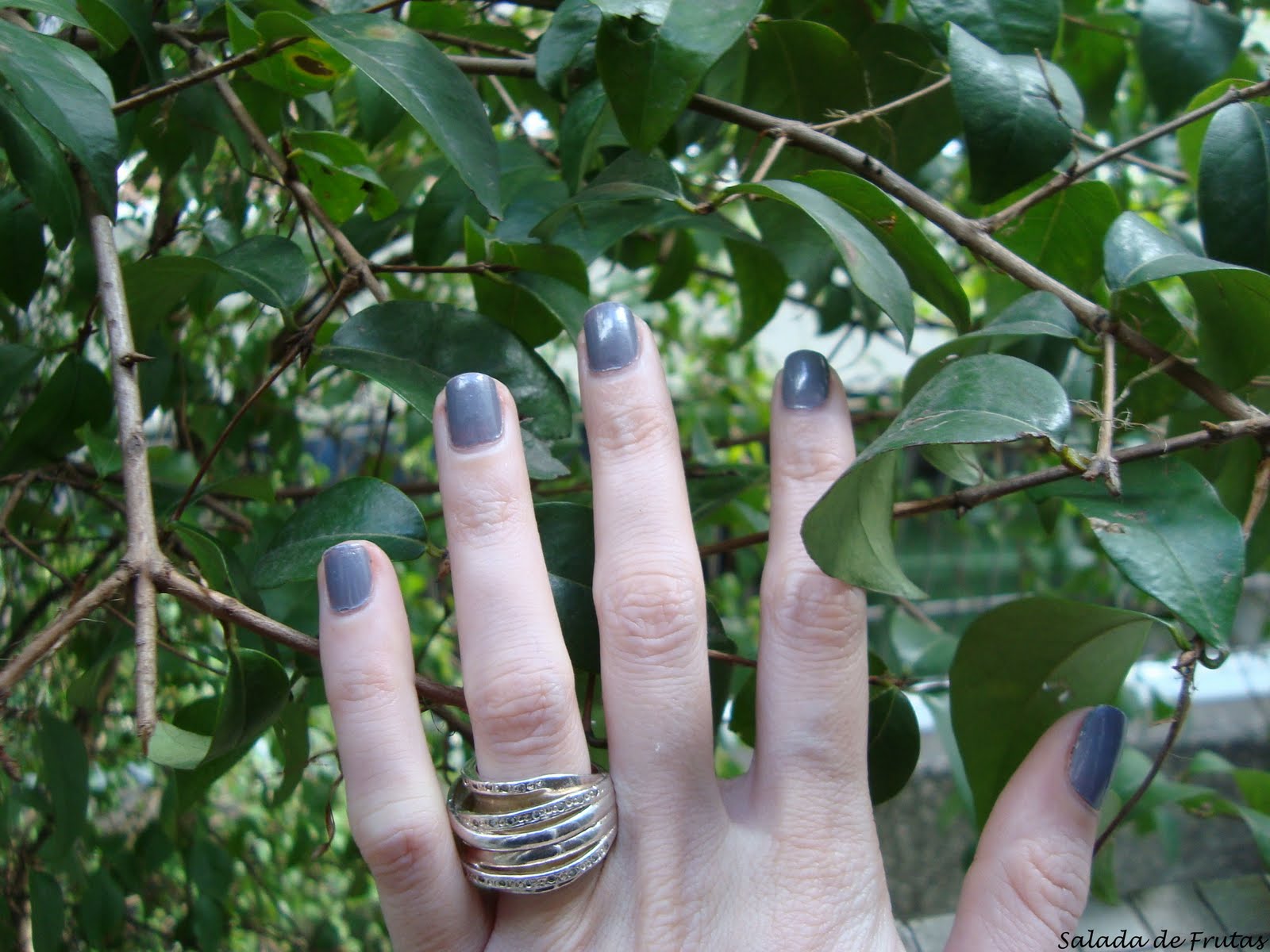 Bom, vamos ao que interessa, né?! A cor é linda, é um cinza, com um fundo de lilás… Apenas 2 camadas são suficientes para cobrir e chegar nessa cor marah! O esmalte é super fácil de passar! Adorei! Ja repeti e repetiria outras vezes -se não fosse todos esses lançamentos que eu to louca para experimentar… hahahaha-.