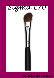 Pincel para sombras E70: para aplicar sombras no concavo, embaixo da sobrancelha e é ideal para fazer o “V” no canto externo do olho. Cerdas naturais.